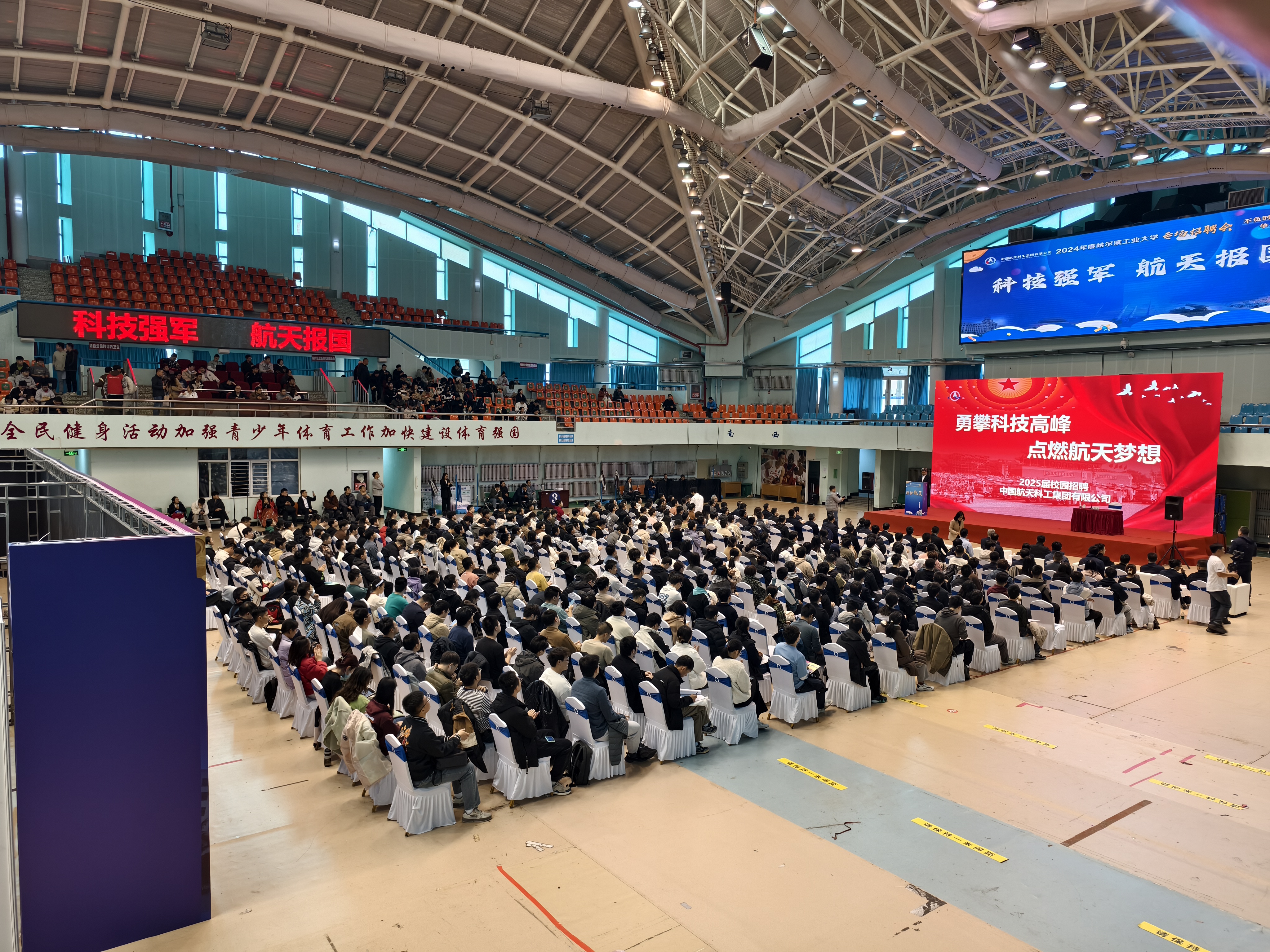 隨后,陳錫明進行了招聘宣講。宣講會吸引了超過600名學子到場聆聽,陳錫明向同學們介紹了中國航天事業的發展歷程、航天科工基本情況以及航天精神的具體內涵,寄語哈工大學子牢記使命擔當,把個人理想追求融入到航天強國建設中,積極投身光榮而偉大的國防軍工事業。