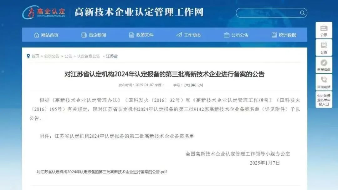 近日,江蘇省認(rèn)定機(jī)構(gòu)2024年認(rèn)定報(bào)備的第三批高新技術(shù)企業(yè)備案名單出爐,南京晨光公司再次通過(guò)“高新技術(shù)企業(yè)”認(rèn)定。此次入選標(biāo)志著公司在核心自主知識(shí)產(chǎn)權(quán)、科技成果轉(zhuǎn)化能力等方面得到國(guó)家相關(guān)部門的肯定與認(rèn)可。