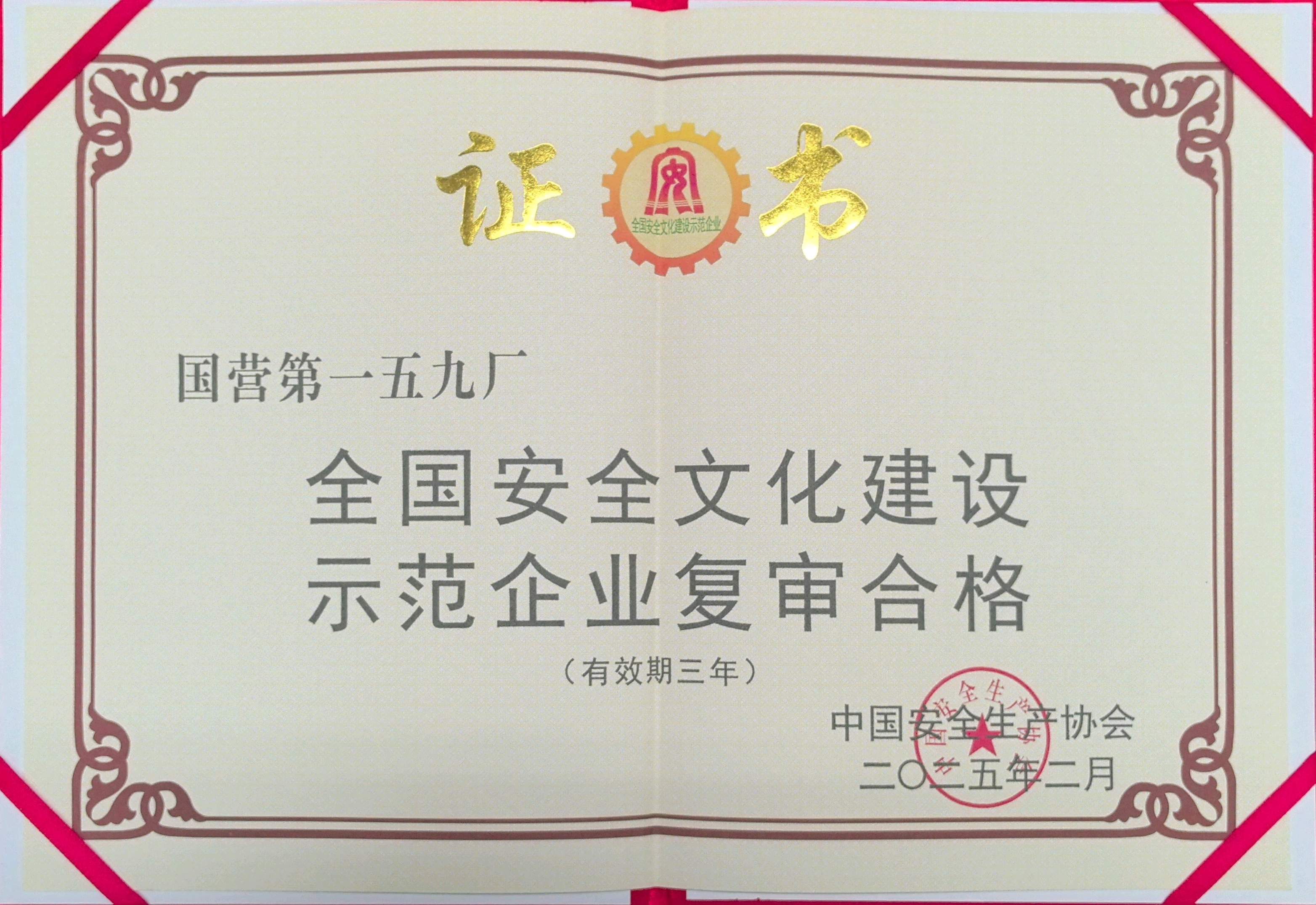 4月8日,中國安全生產協會召開全國安全文化建設示范企業典型經驗交流會,會上宣讀了《2024年全國安全文化建設示范企業及復審結果的通知》,并向2024年全國安全文化建設示范企業及復審通過的企業頒發牌匾證書。航天三院159廠喜獲全國安全文化建設示范企業復審證書和獎牌。