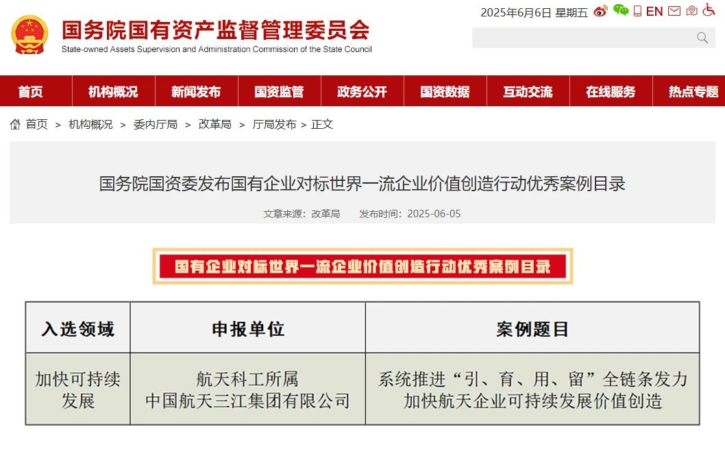 近日,國務(wù)院國資委發(fā)布國有企業(yè)對標世界一流企業(yè)價值創(chuàng)造行動優(yōu)秀案例,航天科工九院申報的《系統(tǒng)推進“引、育、用、留”全鏈條發(fā)力 加快航天企業(yè)可持續(xù)發(fā)展價值創(chuàng)造》成功入選,是集團公司唯一入選案例。