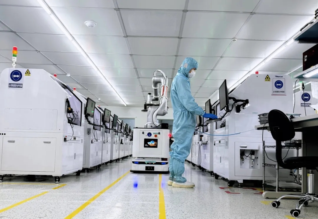 銳科激光智慧光子生產(chǎn)車間,一臺搭載精密機械臂的自主移動機器人正沿著預(yù)定路線,緩緩駛向目標(biāo)機臺。它精準(zhǔn)停靠后,機械臂隨即探入設(shè)備內(nèi)部,執(zhí)行夾取、移載、掃碼、上料等系列操作,一氣呵成。操作員李工站在調(diào)度屏前,專注地監(jiān)控著實時數(shù)據(jù)。