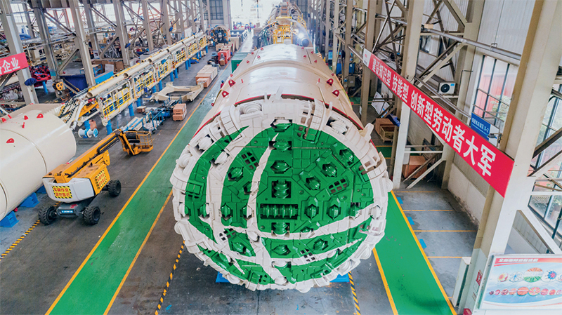 中央企業積極落實主題教育總要求,努力使主題教育成為提高企業核心競爭力、增強核心功能、推動企業攻克“卡脖子”核心技術難題的過程。圖為2023年4月20日,全球首臺可變徑斜井巖石隧道掘進機“天岳號”在中國鐵建重工集團長沙第一產業園下線。 國務院國資委供圖