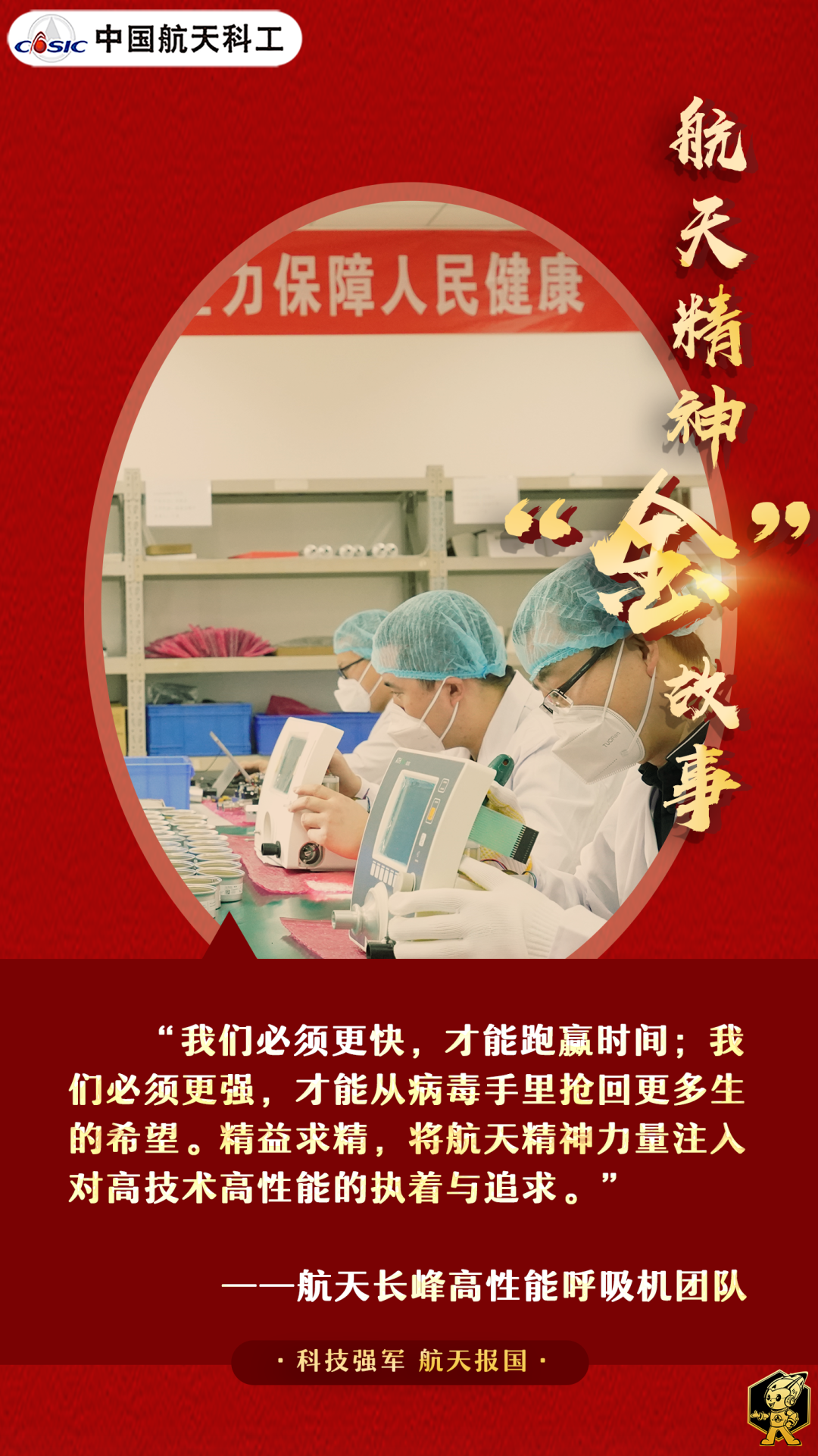 如今,航天長峰相繼攻克了核心零部件、電路系統、軟件控制系統等全鏈條技術難關,成功研制出了國際領先水平的高性能超高速高揚程微渦輪風機,全面自主掌握了呼吸機核心技術,為護佑人民健康貢獻了航天智慧。(海報/張藝馨 文/張章)