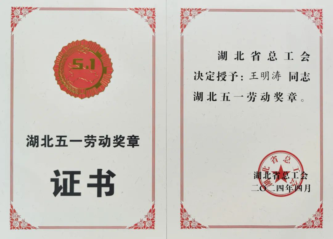 4月29日,湖北省慶祝“五一”國(guó)際勞動(dòng)節(jié)座談會(huì)在漢召開,會(huì)上宣讀了《關(guān)于表彰2024年湖北五一勞動(dòng)獎(jiǎng)和湖北省工人先鋒號(hào)的決定》,其中,二院王明濤榮獲“湖北五一勞動(dòng)獎(jiǎng)?wù)隆薄?/p>