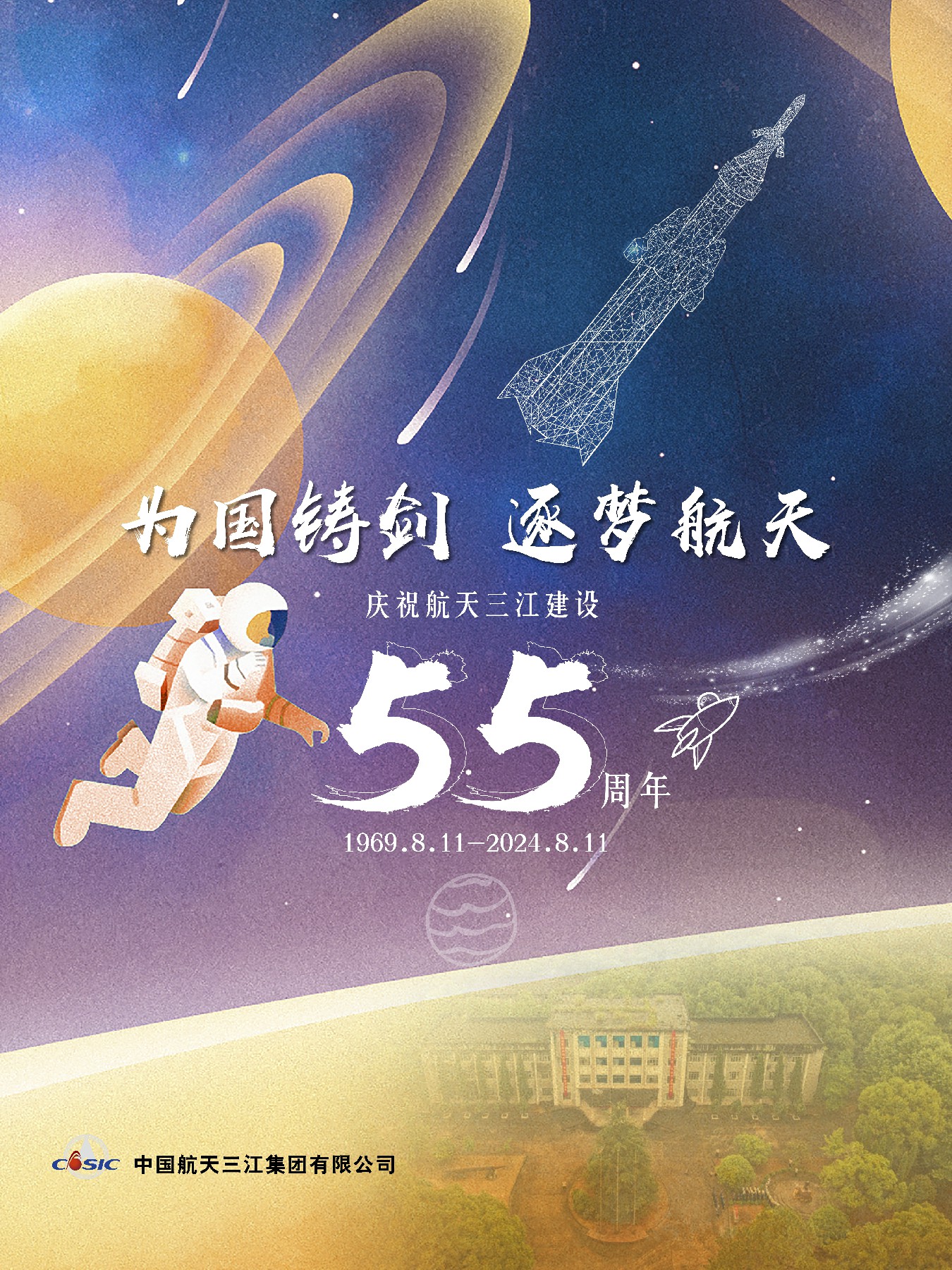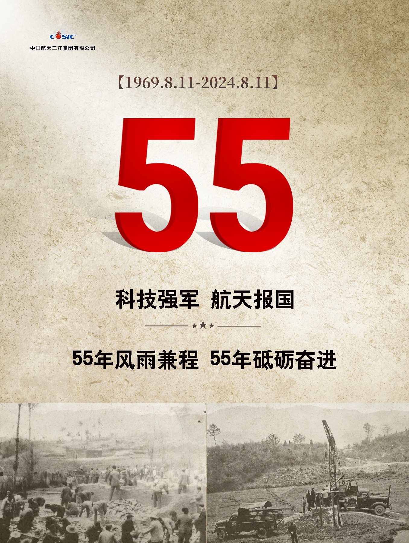 1969年8月11日,敬愛的周恩來總理親自批示“同意”建設(shè)066基地。這一天被正式確定為“航天三江建設(shè)紀(jì)念日”,2024年是航天三江建設(shè)55周年。在紀(jì)念日前夕,航天三江所屬各單位以多種方式回望那段崢嶸歲月,向老一輩三江人致敬,共同祝福航天三江在高質(zhì)量發(fā)展的新征程上揚帆遠(yuǎn)航。