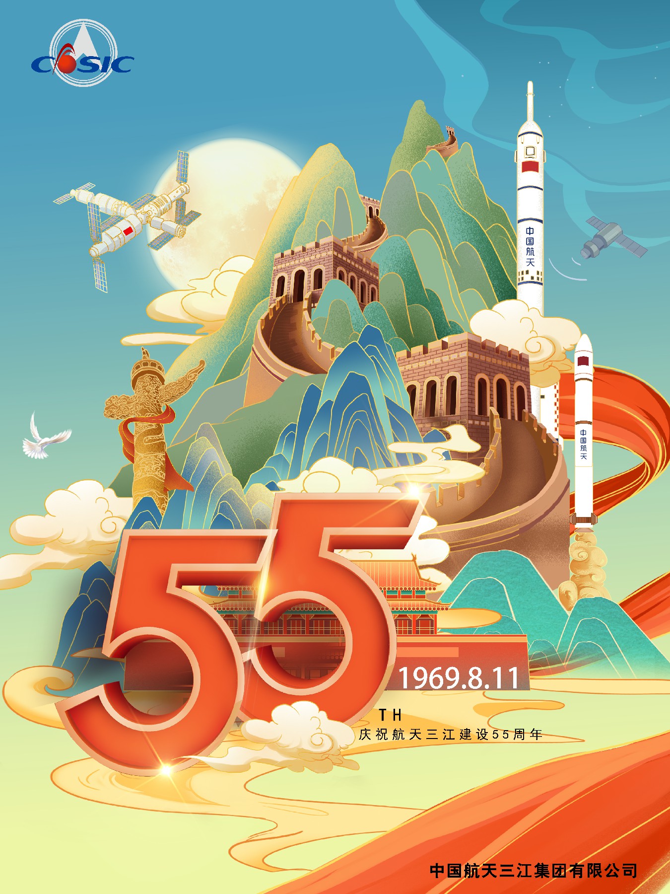 在慶祝航天三江建設(shè)55周年海報征集活動中,各單位踴躍參與繪制了46幅作品。一張張精美的海報生動展現(xiàn)了航天三江55年波瀾壯闊的輝煌歷程,深情表達(dá)了廣大職工對航天事業(yè)的無限熱愛,寓意寄托了對未來發(fā)展的美好期待。
