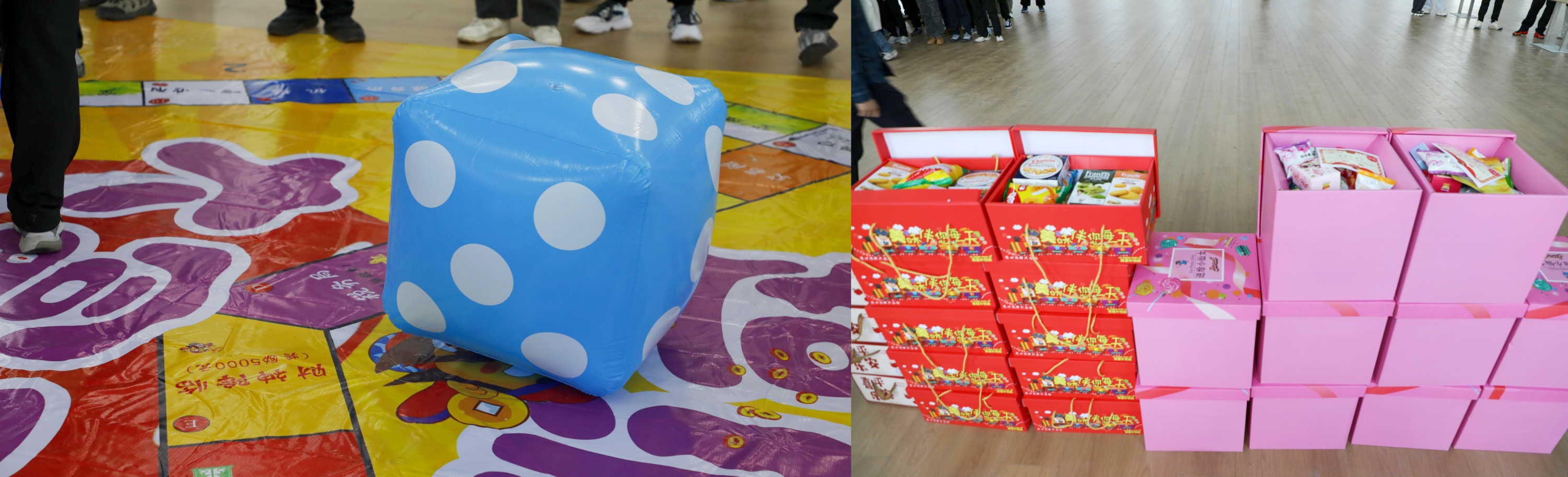 活動(dòng)現(xiàn)場(chǎng)搭建巨型游戲棋盤(pán),青年們化身各路玩家,通過(guò)擲骰子、賺金幣、開(kāi)盲盒解鎖趣味十足的任務(wù)。青年們分組協(xié)作,共同解鎖游戲中的各種挑戰(zhàn)。頭頂上方旋轉(zhuǎn)的骰子開(kāi)盲盒般地“挑選”任務(wù)窗格,大家群策群力破解任務(wù)。5支隊(duì)伍在追逐中一步步接近終點(diǎn),“友誼金幣”在不經(jīng)意間越壘越高,默契值也在一次次互動(dòng)中不斷增長(zhǎng)。
