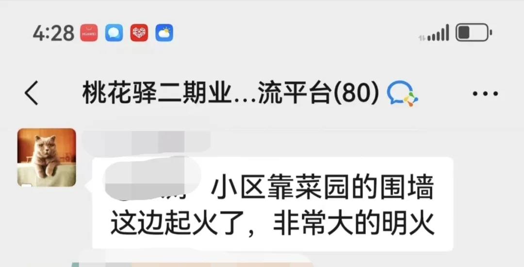 當晚,剛剛吃過晚飯的鮑師傅正在休息,忽然看到業(yè)主群里有人發(fā)了一條消息——“小區(qū)靠菜園的圍墻這邊起火了”。